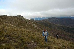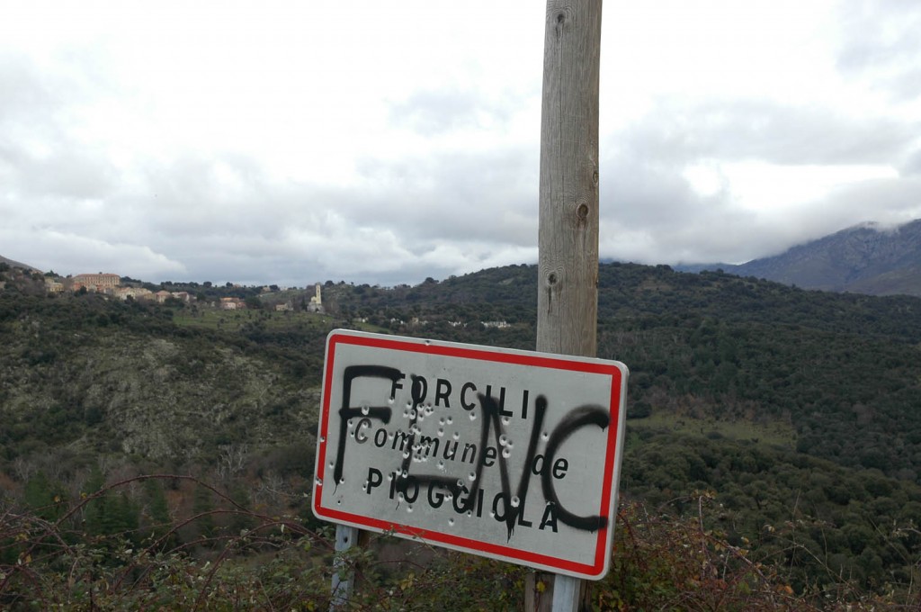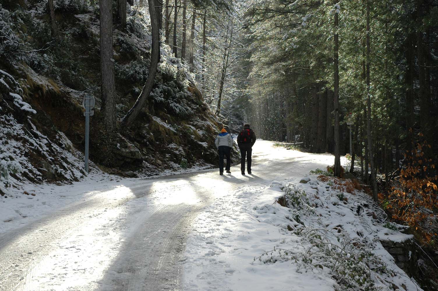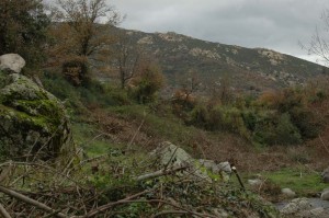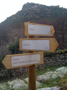 Au programme pour l’après-midi, promenade jusqu’au pont Génois au delà du moulin suivant, sur le torrent. Le passage du gué est plus hasardeux qu’en été en raison du niveau d’eau mais ça passe. Antoine-le-trappeur nous organise un passage (presque) à pied sec. A notre grande surprise, une fois arrivé à l’ancien village, les sentiers deviennent tout à fait praticables. L’explication se trouve 100 m plus loin: la Balagne a investi dans de nouveaux panneaux pour les promeneurs.
